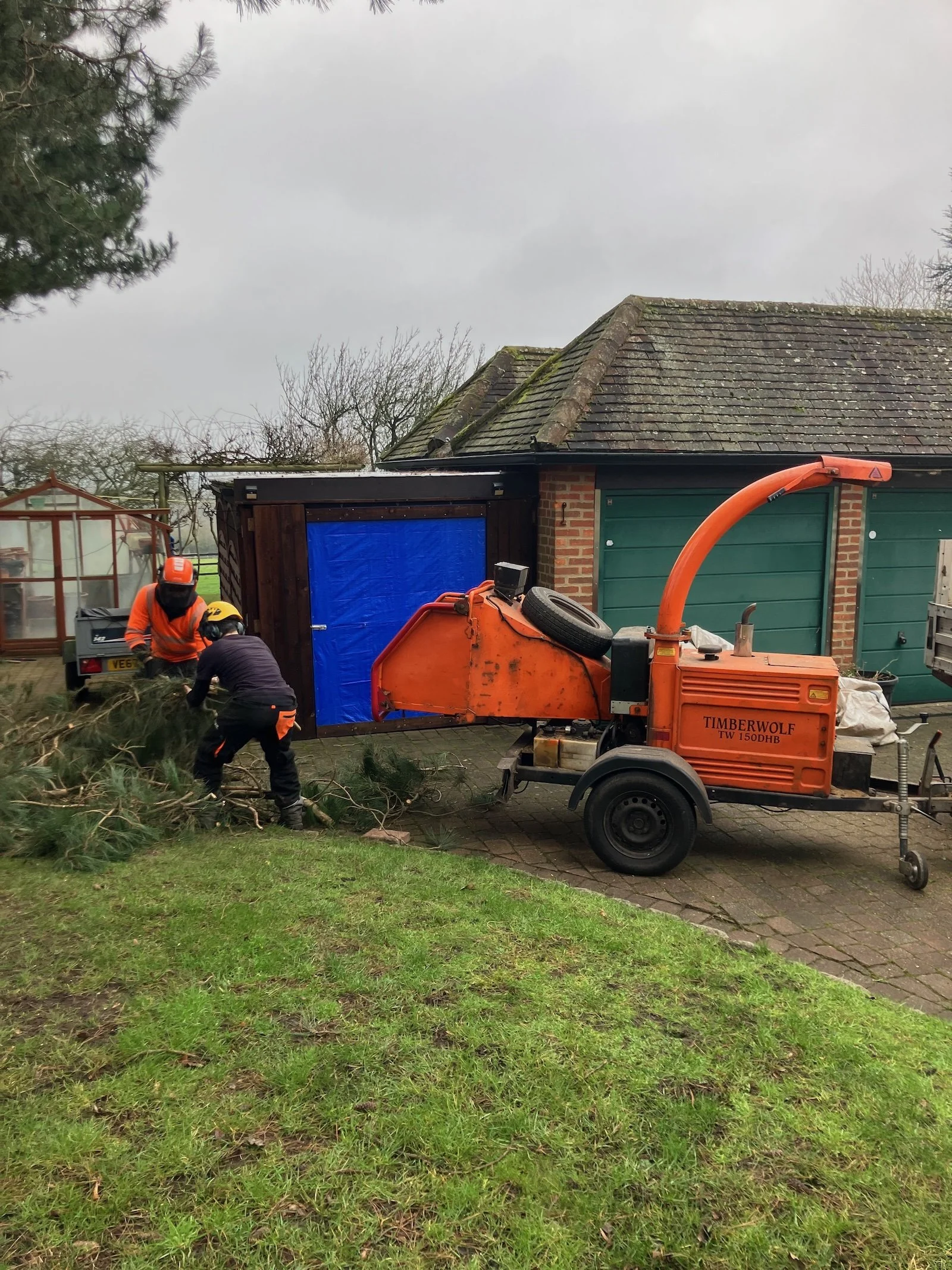 Controlled process of cutting down a tree, typically involving careful planning and technique to ensure safety and minimise damage to surrounding areas.
